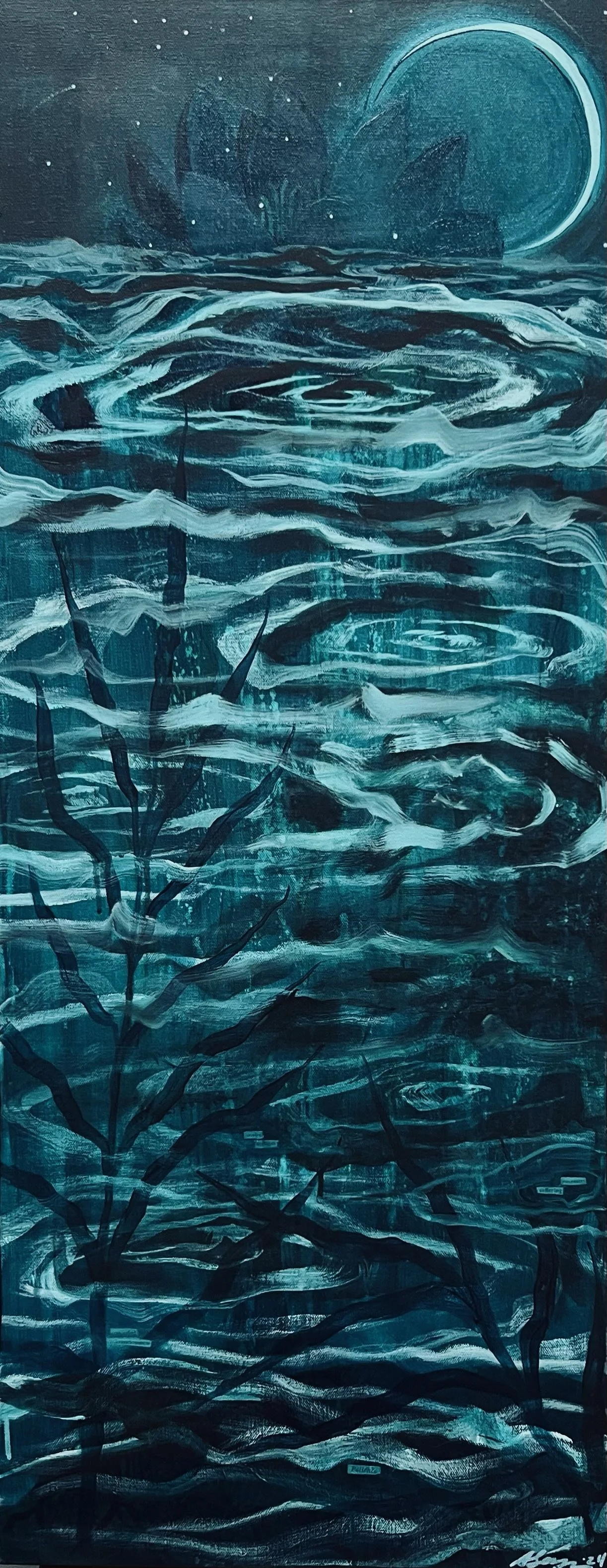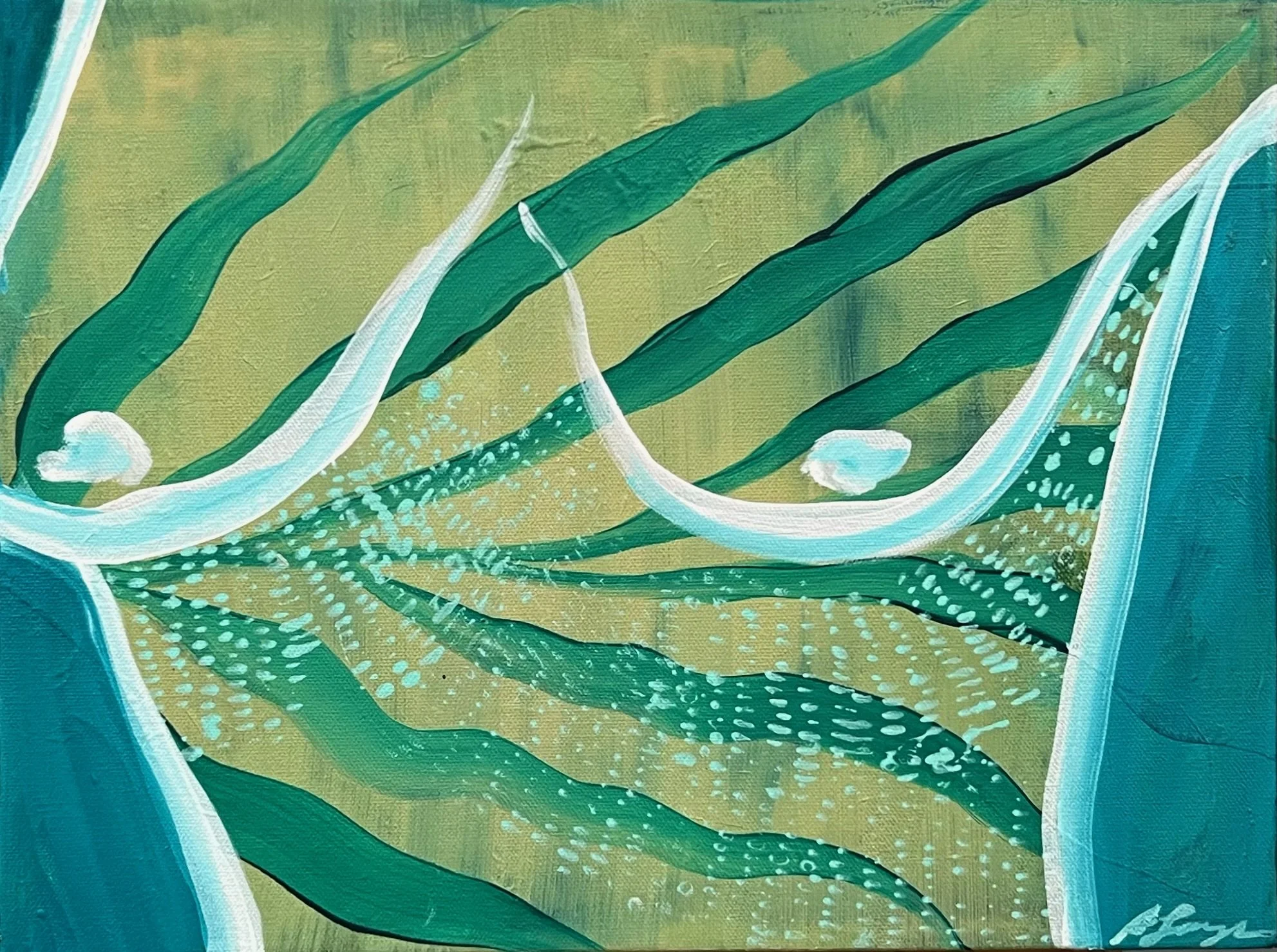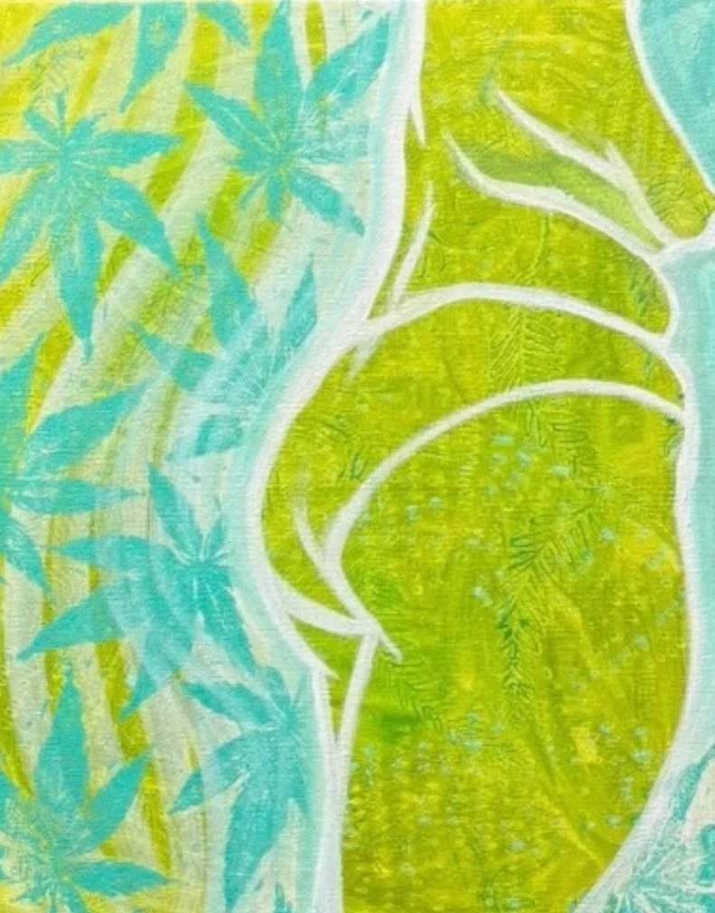 Her technique, intentionally loose and uncontrolled, allows for natural organic textures and patterns to coalesce into imagined, yet familiar natural scenery and dreamscapes. Alex creates work with a variety of water-based mediums, her favorite being acrylic for its ability to be watered down and layered. She is inspired by the symbolism and spirituality that ebbs and flows throughout nature.