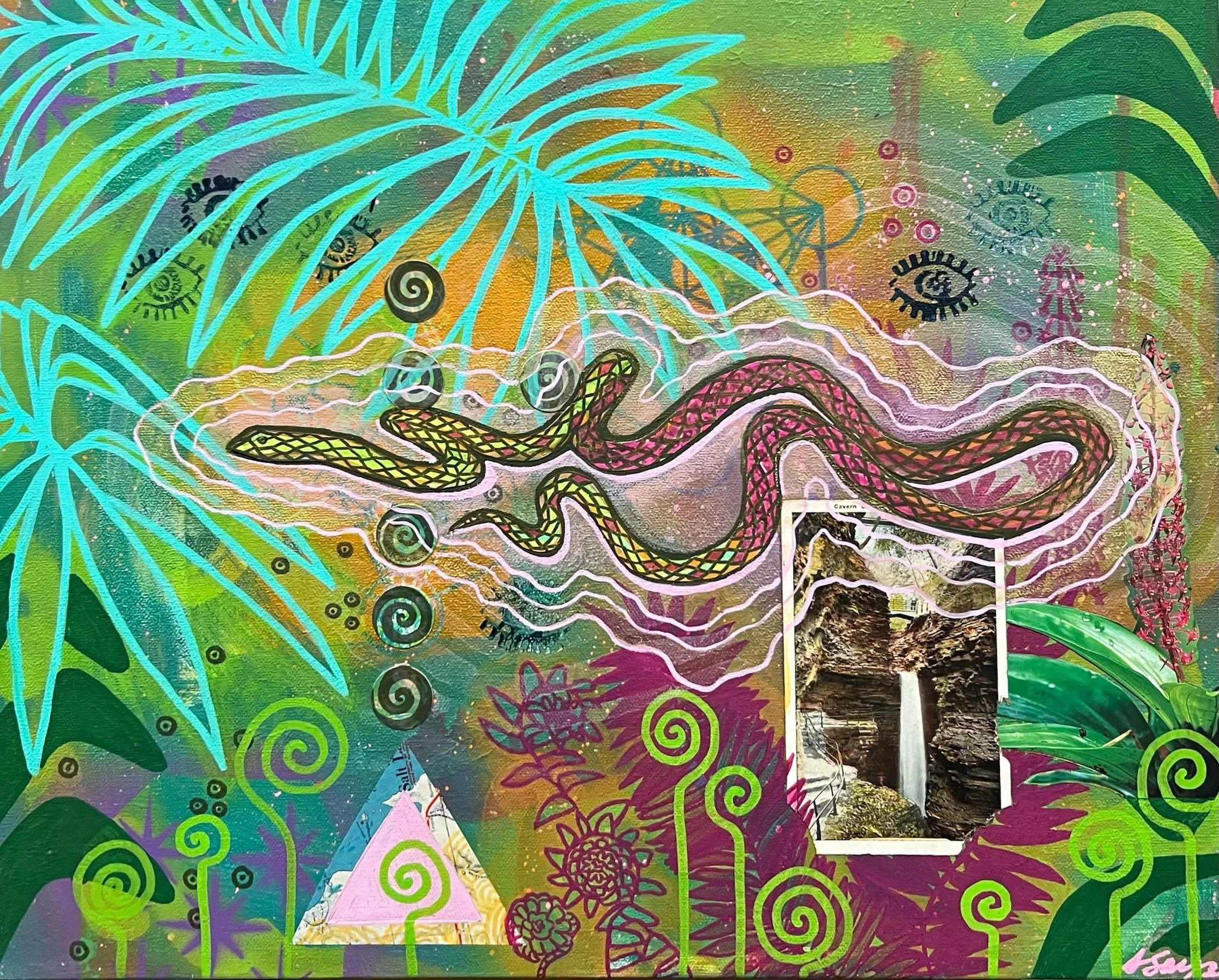 Her work aims to relax the viewer while igniting a curiosity and wonder for creative expression that modern existence aims to suppress. She hopes her work will guide the viewer to explore their own wild unknown and recognize that creativity is a necessary tool available for everyone.